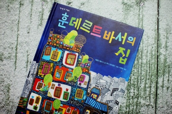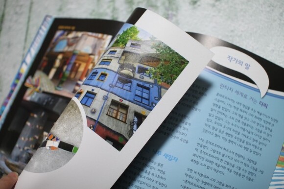 책 속에서도 뒷 부분에 건물의 실제 사진이 큼지막하게 수록되어 있다. 오스트리아에 있는 훈데르트바서 하우스의 분수나 정교한 모자이크 기둥 등의 사진도. 훈데르트바서에 대한 소개와 글 작가와 그림 작가가 들려주는 작품에 관한 이야기도 나온다.