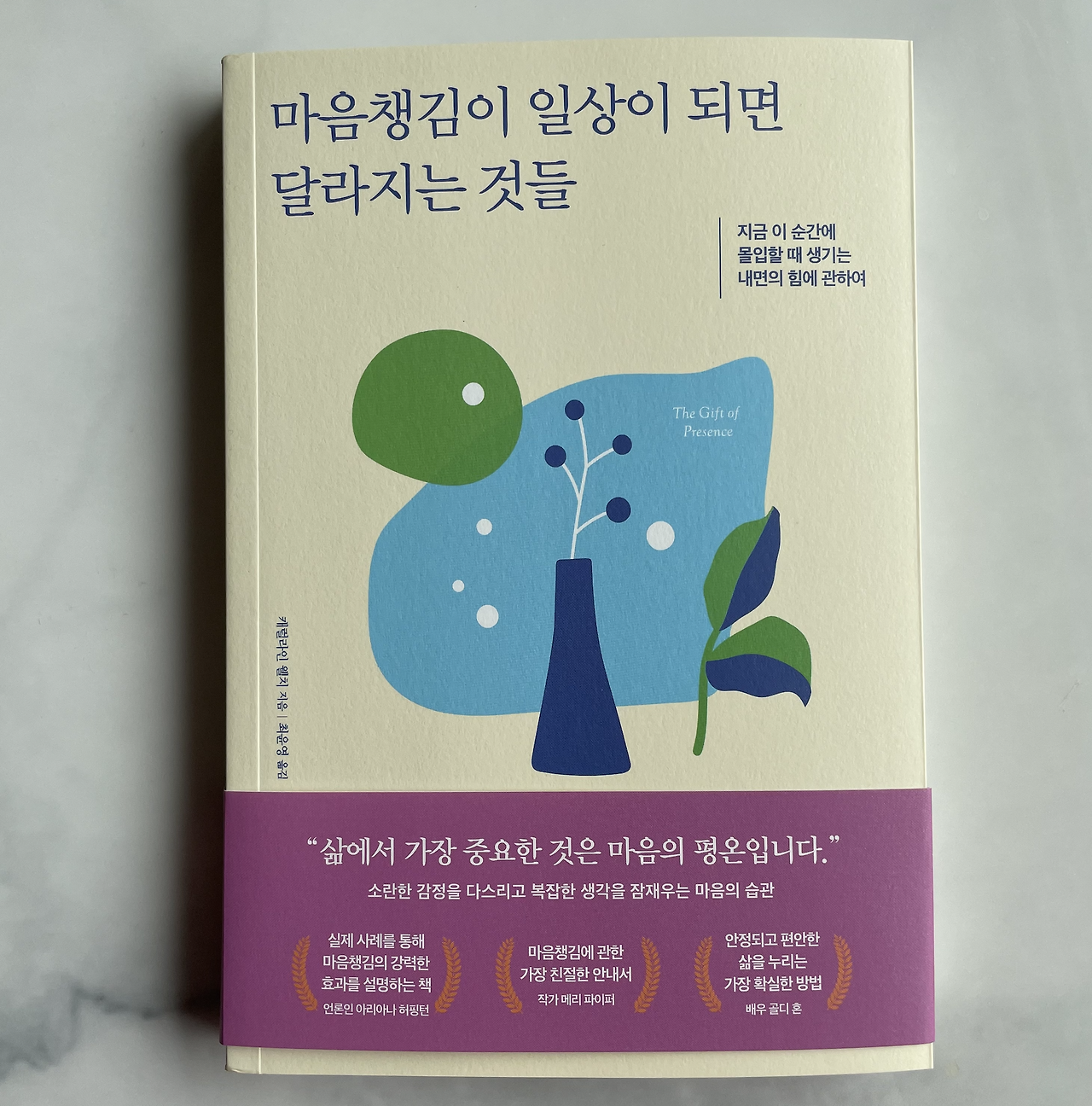 요즘 나 자신을 돌보는 것에 관심이 많다. 이전에는 일이 최우선이라고 생각했다면, 요즘은 내 몸과 마음을 먼저 챙긴 다음 일을 챙기자 주의. 일을 하다 보니 알겠더라. 일도 내가 컨디션이 좋아야 최상의 결과를 낼 수 있고, 그러기 위해서는 내가 나를 돌봐야 한다는 것을. 그래서 읽기 시작 한 책, <마음 챙김이 일상이 되면 달라지는 것들>. 읽다 보니 나 자신에게도, 또 내 주변 사람들에게도 나누고 싶은 말이 있어 글을 쓰게 되었다.