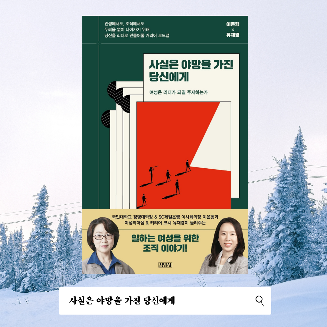 김영사의 <사실은 야망을 가진 당신에게>는 인생에서도, 조직에서도 두려움 없이 나아가기 위해 당신을 리더로 만들어줄 커리어 로드맵이다. 따라서, 리더가 되고 싶은 여성분들에게 강력 추천하는 책이다.