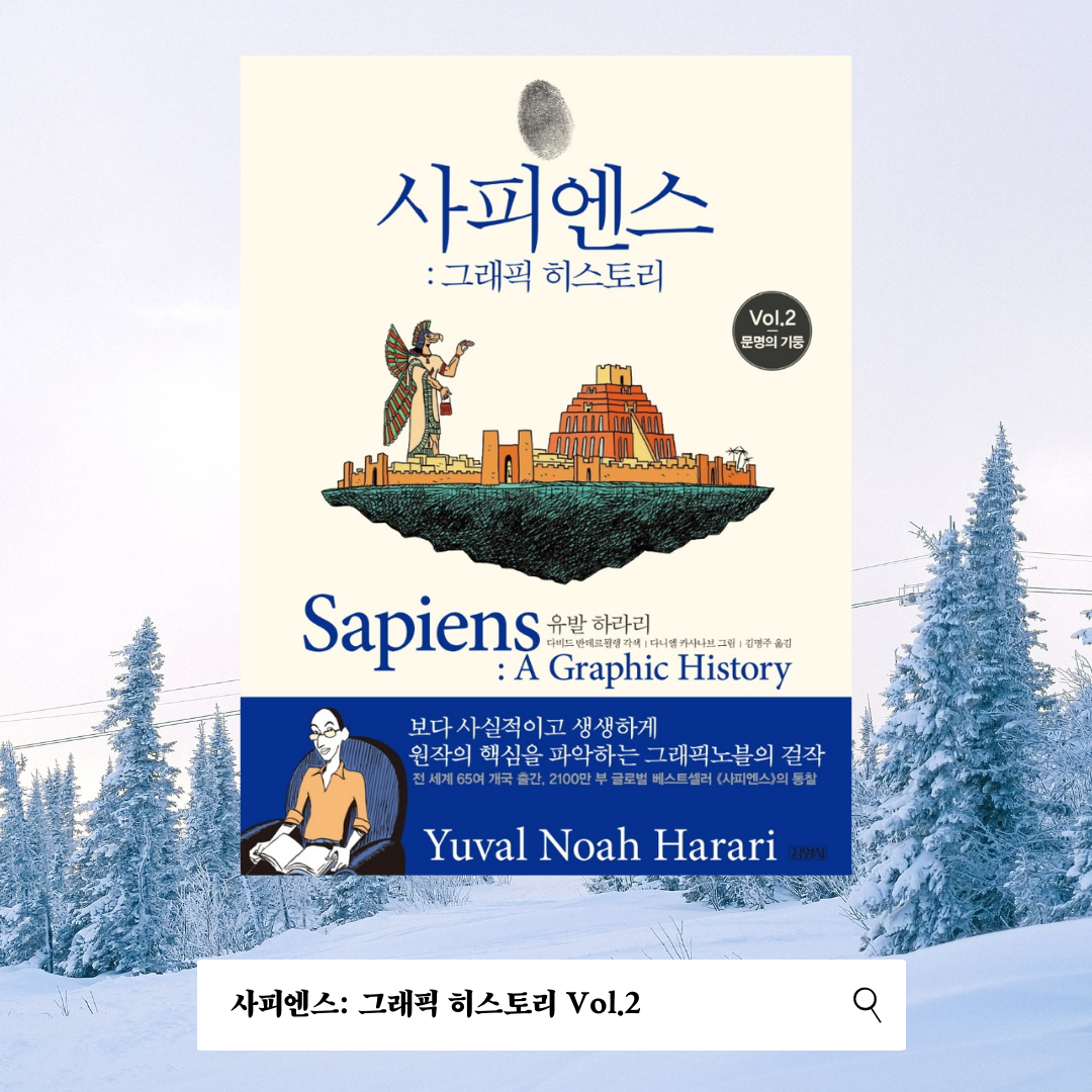<사피엔스 : 그래픽 히스토리> 2편이 드디어 나왔다. 원 책은 물론이고, 그래픽 히스토리 1편도 봤는데, 2편이 너무 보고 싶어서 괜스레 기다리게 되었는데 드디어 나와서 기쁜 마음으로 정독했다. 사피엔스 그래픽 히스토리 시리즈는 5편까지 나올 예정이라는데, 5편까지 빨리 나왔으면 좋겠다. 컬렉션으로 모아도 좋은 시리즈고, 어른이나 애나 상관없이 모두가 재밌고 유익하게 읽을 수 있는 책이기 때문이다.