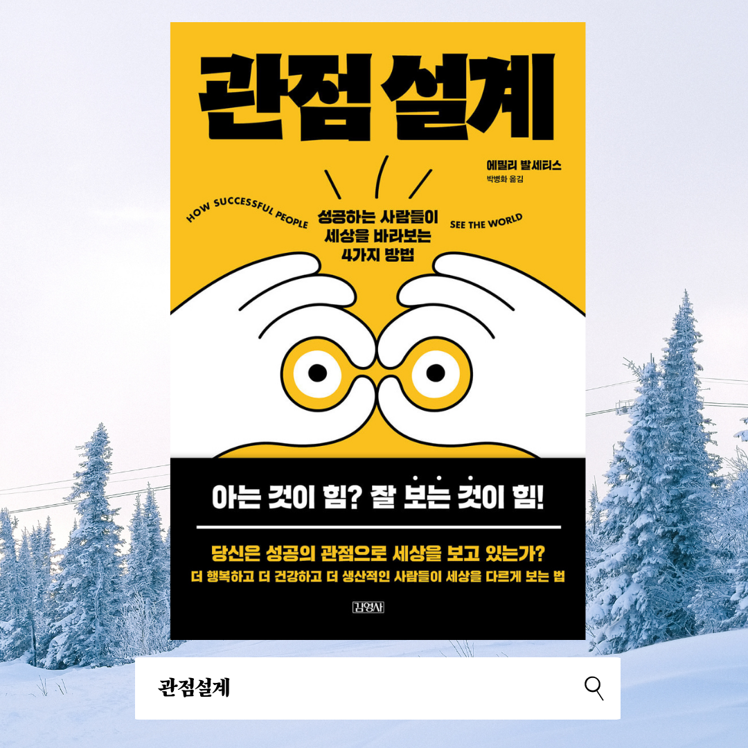 김영사의 <관점 설계>를 읽으면서 드는 생각들이 많다. 드는 생각만큼이나 배운 것들도 많은 책이었다. 이 책에서 말하고자 하는 중심 메시지는, 성공을 하려면 어떻게 우리가 세상을 <잘> 볼 수 있는지 알아야 한다는 것이다. 나는 이에 강하게 동의한다. 어렵다고 생각하면 어려울 것이요, 쉽다고 생각하면 쉬울 것이니.