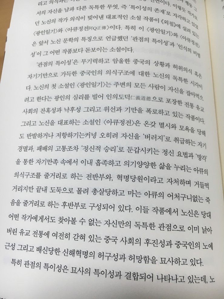 최근에 아큐정전을 연극으로 만든(각색 후 ㅎ)걸 보고 나서여서 그런지 신해혁명을 다룬 아큐정전에 대한 특이적 모습을 말하는 부분이 재미있어서 찍어두었다.
