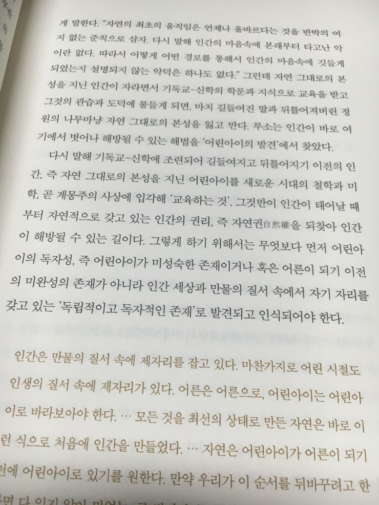 루소가 계몽을 하는, 신에 갇혀 있던 세계에서 어떻게 나오게 되는지를 표현하는 부분인데, 결국 '자연스러움'을 깨달아 가는 과정을 그린다. 모든 글쓰기는 그 글이 쓰여지는 시대상을 무시할 수가 없고 그래서 이 책에서도 이런 다양한 배경 상황들을 자세히 설명하고 있다.