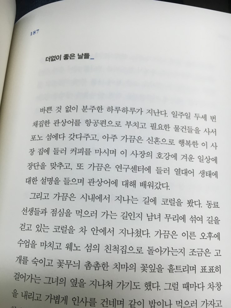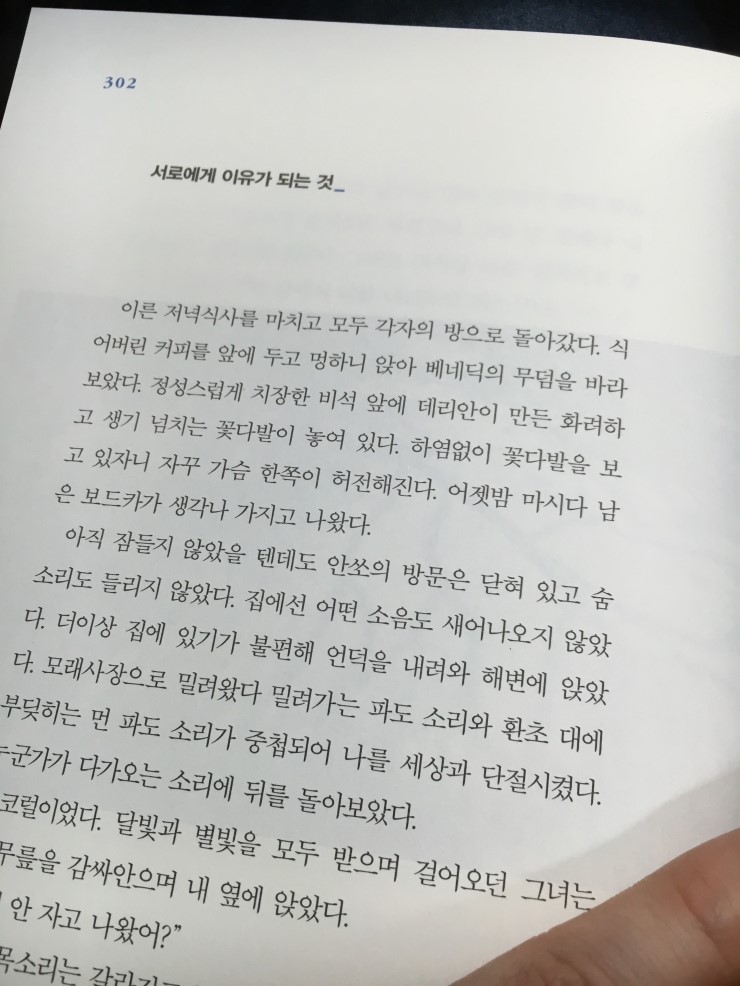 '서로에게 이유가 되는 것_' 사실 이게 우리가 생각하는, 그리고 우리가 추구 했어야 할 가장 중요한 것이었는데. 여기를 읽으면서 도대체 살면서 중요하게 생각하던 것들을 '돌아볼 여유'없이 살아 온 것은 아니었을까 반성하게 되었다.