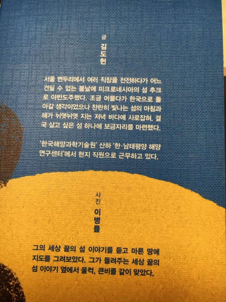 이걸 딱 보는 순간 '떠나고싶다', 뛰어들고싶다'란 생각이 들었다. 이병률 작가님은 '아마도' 김도헌 작가님의 이야기를 듣고 사람에게 끌려 이 책을 함께 하신 게 아닐까 싶은데 이러쿵 저러쿵 떠나서 저 바다 색을 보는 순간 그냥 와~하게 된다.