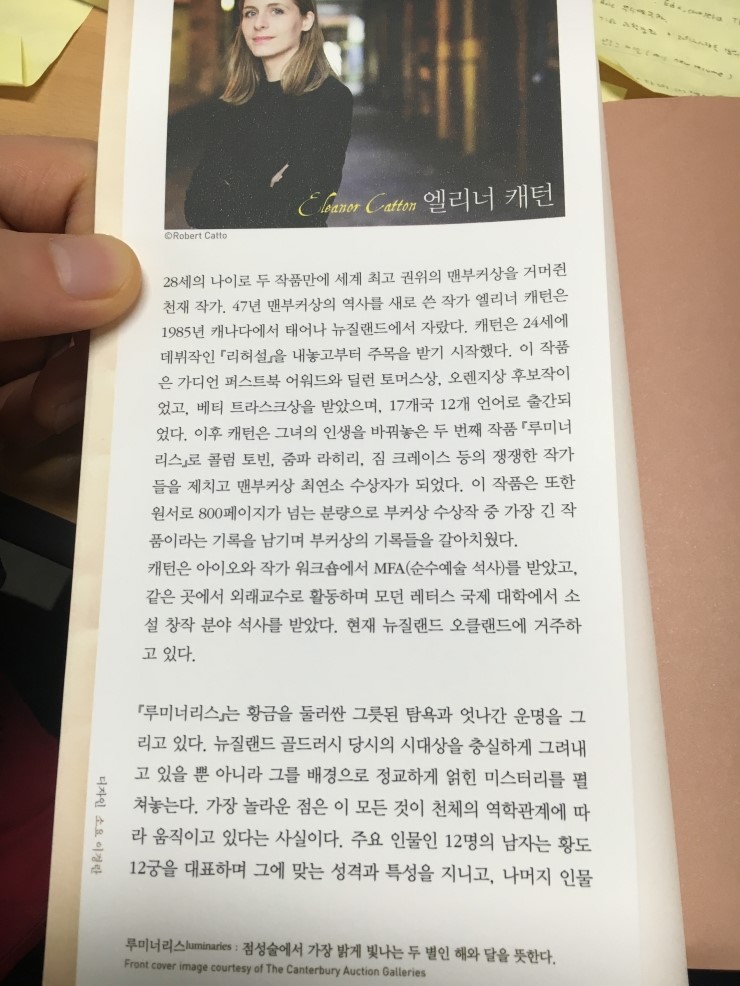 맨부커 상 수상작에 상당히 다산북스는 관심을 가지고 있는게 아닐까 싶은 생각이 들고 동시에 이 작가의 미래에도 어느 정도 투자를 하는 것 같다. 왜냐하면 이번 루미너리스는 광고도 상당히 대대적으로 한다는 생각이 들었기 때문이다.