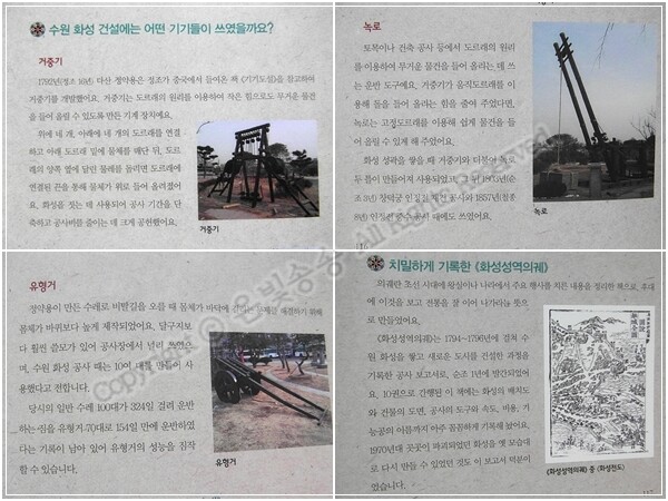 수원 화성을 건설하는데 쓰인 기기들도 소개되어 있지요.