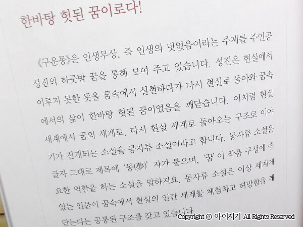 하룻밤 꿈으로 체험하면서 깨달음을 얻는 과정을 그리고 있는 책이예요.