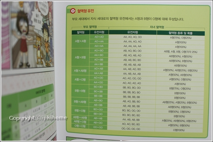표에서 보면 AB형과 O형이 만나면 A형이나 B형이