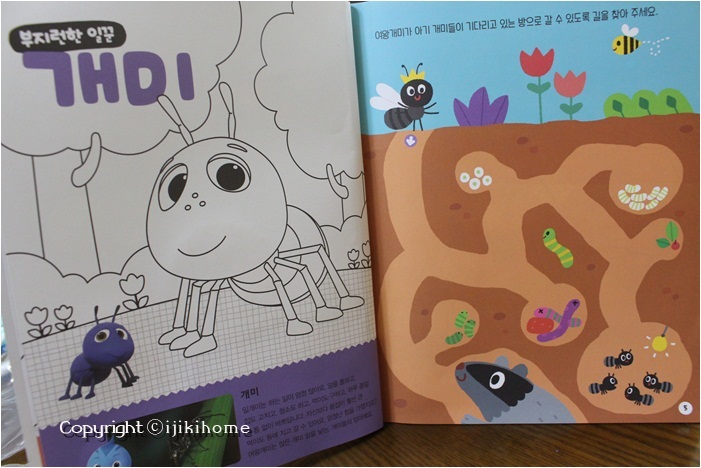 곤충에 대해 알아보고 색칠도 하고 미로찾기, 따라그리기,