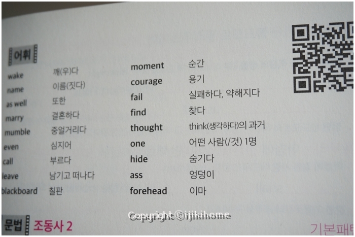 QR코드를 이용하여 원어민발음으로 들을 수 있다.