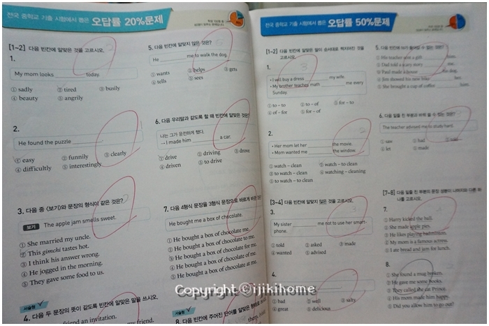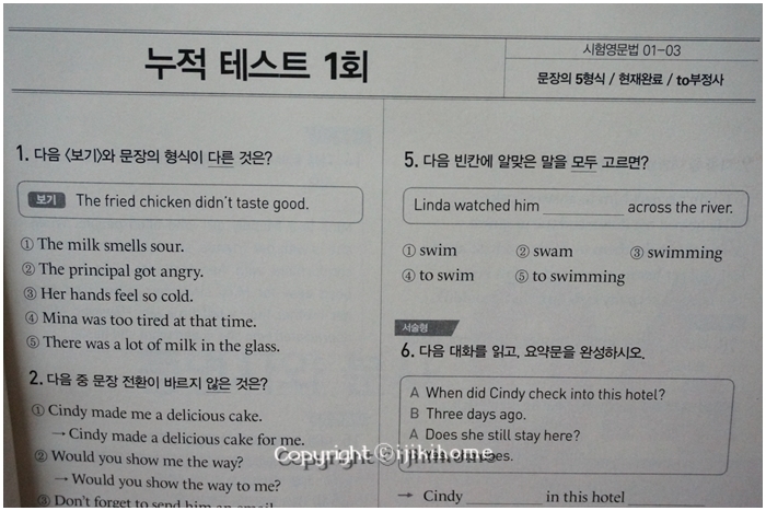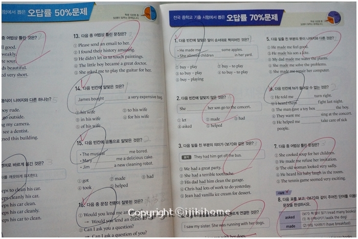 중학생을 위한 시험영문법이 있어서 풀게했는데
