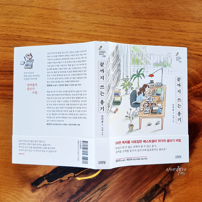 이 책을 처음 쥐었을 때부터 기분이 좋아졌는데요. 읽기도 전부터 이미 부담감이 스멀스멀 올라오는 책이 있는가 하면 <끝까지 쓰는 용기>는 표지만 봐도 느슨한 행복감을 주는 힐링 책으로 다가왔습니다. 일러스트레이터 이내 작가님의 정갈한 그림이 정여울 작가님의 문체와 찰떡궁합이네요.
