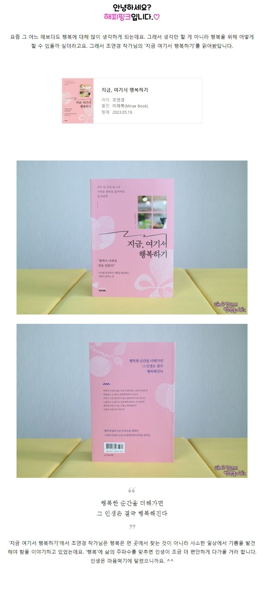 조만간 정식 출간된 <조금씩 분명히 행복해지는 습관>를 항상 읽으며 어제 보다 오늘 더욱 행복해지렵니다 :-)