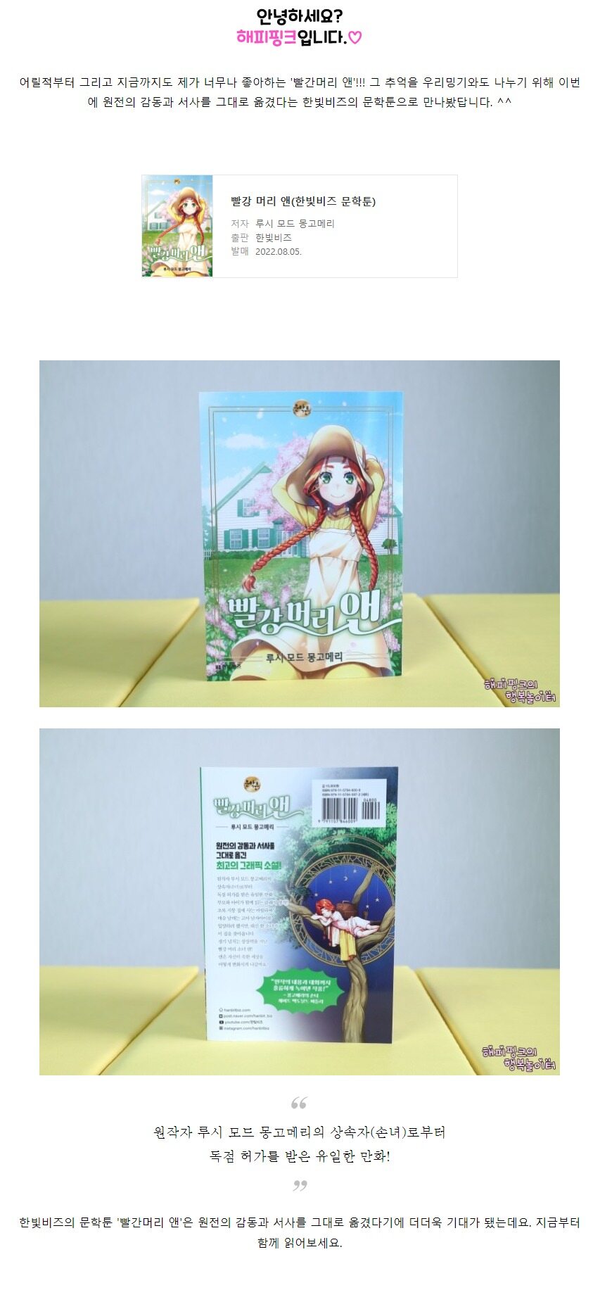 루시 모드 몽고메리 지음, 쿠마 찬 그림, 양지윤 옮김, 크리스털 챈 각색 / 한빛비즈 / 2022년 8월