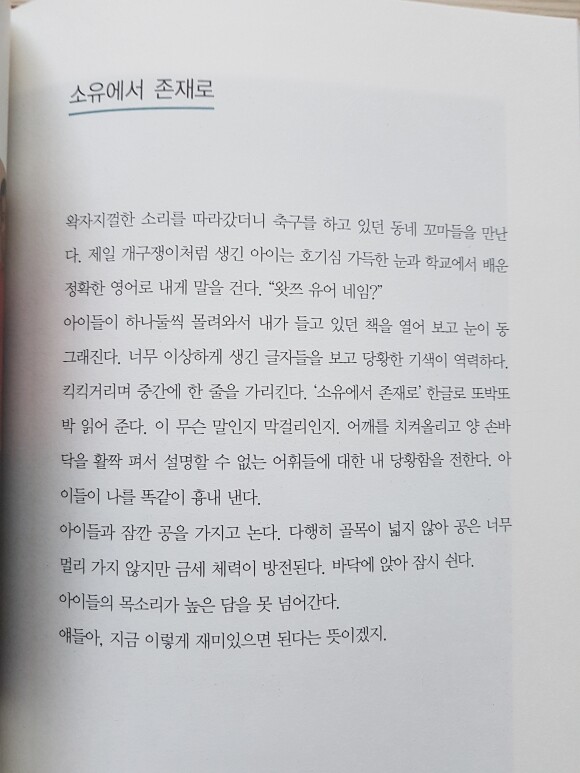 그러기에 꾸준히, 성실히, 용기있게, 내면의 외침들에 등 돌리지 않고 계속 꿈과 낭만을 찾으려 애써야 한다.