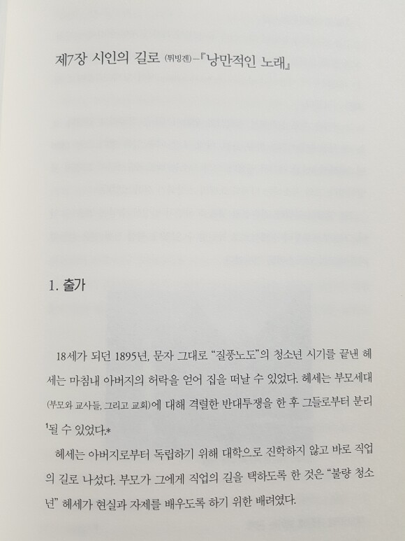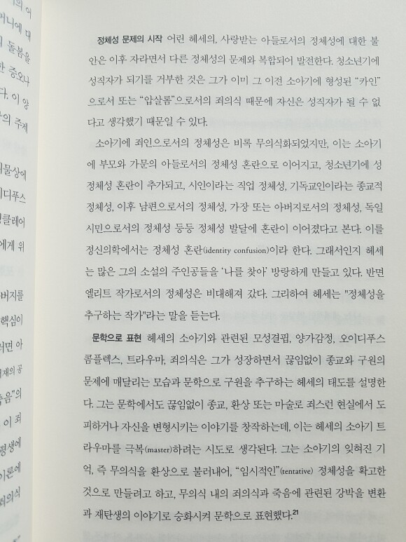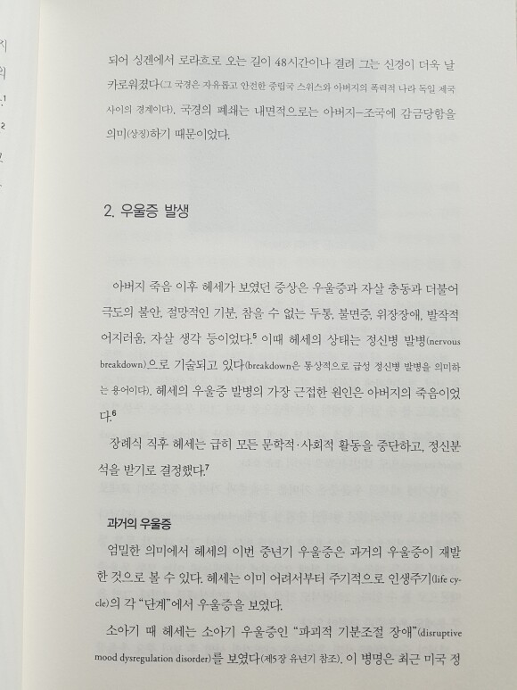 요즘 젊은이들은 아마도 헤세가 우울증과 자살 생각에 사로 잡혀 사회의 아웃사이더로 살았다는 사실응 모를 것이다. 더군다나 목사의 아들로 청소년기에 성직가가 되기 위한 신학교 교육울 받다가 탈출하는 바람에 정신병원 입원했다가 중년에도 우울증에 걸려 정신분석 치료를 받았다는 사실은 헤세 자신도 숨기고 싶어하는 헤세의 진실 중 하나이다.