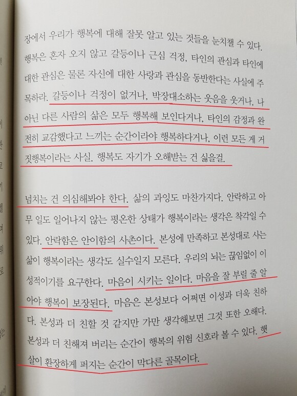 행복이란 무엇인가? 나에게 주어진 시간을 충분히 누릴 수 있는 상태를 말한다. 많은 것을 바라지는 않는다. 일정 시간 노동을 통해 소득 활동을 하고, 나머지 시간에는 소비를 하며 내가 살아 있음을 느끼는 것, 노동하는 만큼 존중을 받는 것, 노동을 통해 미래를 꿈꾸는 것,,,,