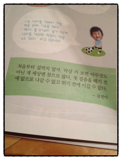 아이와 제가 생각이 일치하고 공감이 되었던 말이 김연아의 명언이었어요.