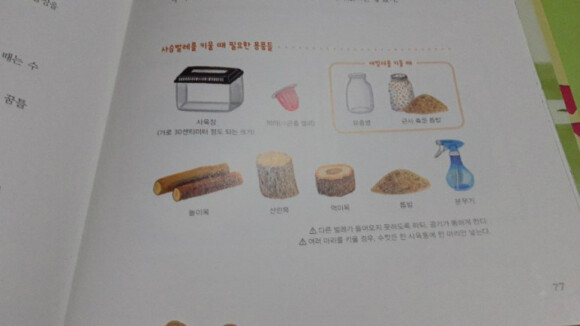 수 있어 참 좋았어요.책에서는 곤충의 특성도 알려주고 만약 키우게 된다면 주의사항이 뭔지, 그리고 필요한 용품들은 무엇인지 자세히 알려줍니다.