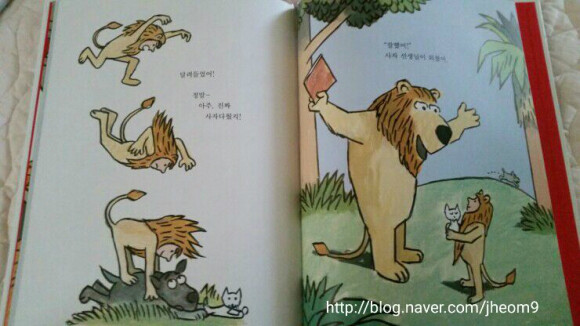 보물찾기 신간 [사자 자격증따기]책이예요인성책도 아니고 정보전달책도 아니고 이 책은 무엇을 아이들에게 알려주는 책일까요?자,아들과 침대 누워 읽어봅니다.한 남자아이가 옷을 골라요.입은 의상을 보니 사자 코스프레네요^^이 가게는 인간들이 따는 무수한 자격증이 아닌 사자자격증을 따는 곳이랍니다.그래서 아이는 자격증을 따기 위해 옷을 입은 것이지요.사자선생님은 이 아이에게 사자되는 여러가지 훈련을 시작해요.인간인 아이가 잘 할 수 있을까요?