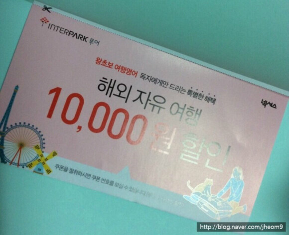 책 안쪽에 이렇게 자유여행 만원 할인권이 붙어있어요.