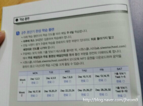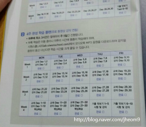 시원스쿨에서 강조한 내용은 2주안에 책을 한번 끝낼 수 있다는
