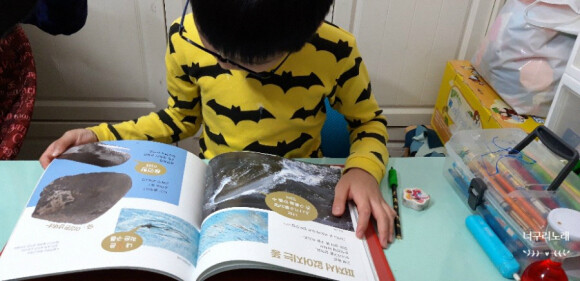 혼자 책 보기 연습 중인데 이렇게 또 책을 볼 때 푹 빠져서 보고 있어요
