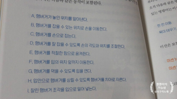 햄버거를 먹는것 까지 동작을 포함해 코딩을 알고리즘에 맞춰 짜는것인데요.