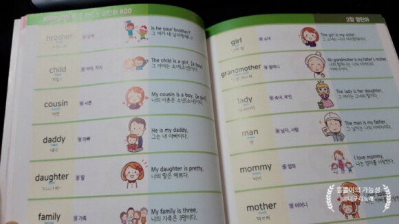 처음 구성은 가족관계로 시작하고 뒤로 가면 동사들이 많이 나오네요.
