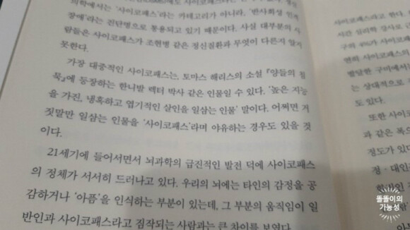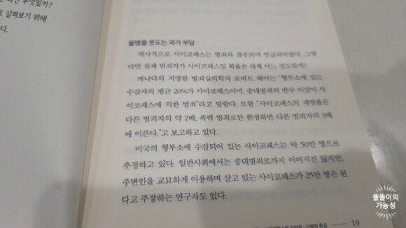 [사이코패스] 이 책 별로 두껍지 않으니까 시간되시는 분들은 읽어보시는게 좋겠습니다.