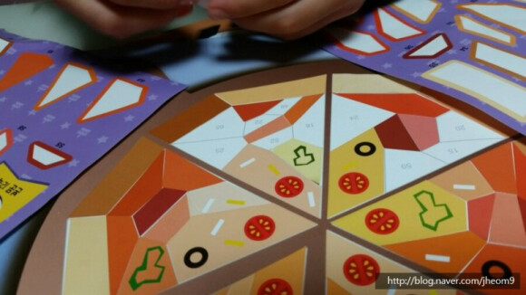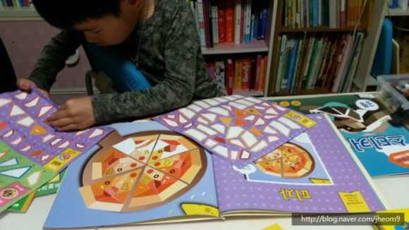 이렇게 피자 한판을 나눠먹는 조각에 따라 분수가 된다는것을 너무나 쉽게 알려주었어요.