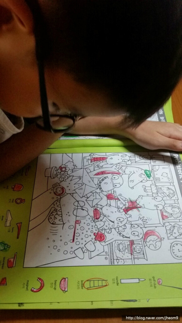 숨은그림이 큼직 큼직 숨겨 있어서 아이가 못찾는동안 여러번 단어를 반복적으로 알려줄