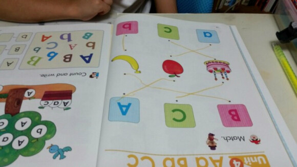 아들은 이제 파닉스 교재에서 abcd까지 갔습니다.