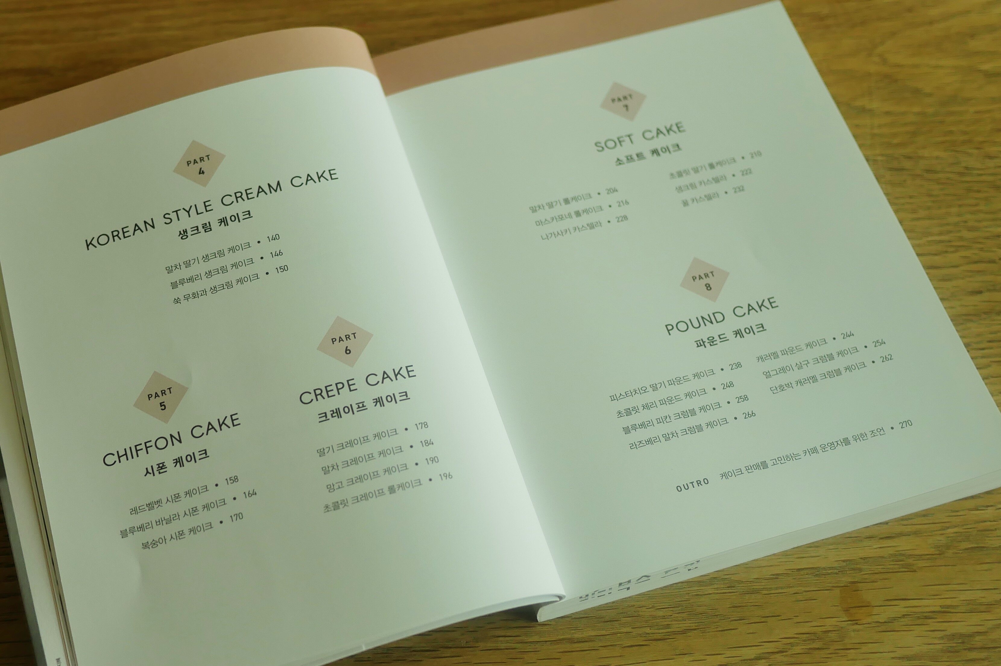 저는 개중에 빅토리아 케이크 파트가 참 반가웠어요. 아이싱이 필요하지 않아 간편하지만 모양은 참 예뻐서 근래에 떠오르는 케이크잖아요. 시중에서는 딸기로 만드는 게 제일 많던데 책에는 오렌지 살구, 코코넛 망고, 레몬 블루베리, 라즈베리 바닐라가 실려 있어요. 때문에 좀 더 특별한 빅토리아 케이크를 만들고 싶은 분들에게 좋겠더라고요. 홈 케이크는 고구마, 당근, 밤 등을, 초콜릿 시그니처 케이크는 티라미수, 초콜릿 바스크 치즈케이크처럼 초콜릿을 활용한 레시피랍니다. 스테디셀러인 생크림 케이크, 식물성 유지를 써서 깔끔한 식감이 남다른 시폰 케이크, 한 번도 만들고 먹어 본 적이 없지만 늘 궁금했던 크레이프 케이크, 부드럽고 폭신한 카스텔라와 롤케이크가 실린 소프트 케이크, 초보 시절 자주 구웠던 파운드 케이크까지 알찬 책이라서 매장을 운영하는 분뿐 아니라 다양한 레시피가 궁금한 홈 베이커들의 구미에 맞겠어요.