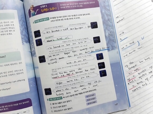 겨울왕국 영어교재로 공부한지가 엊그제 같은데