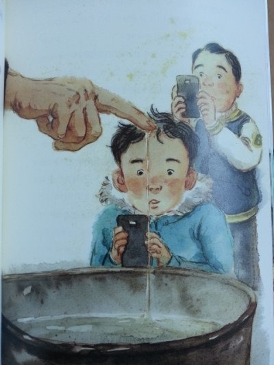 한편, 지호의 아버지는 시외로 나가 일을 합니다. 한지 만드는 과정이 고됨을 알기에 차라리 편한 다른 직업을 택하려고 떠난 것이지요. 하지만, 어떤 사건을 계기로 지호의 아버지가 딱 할아버지 댁으로 돌아오고, 할아버지(자신의 아버지)를 대신하여 한지를 만들게 됩니다.