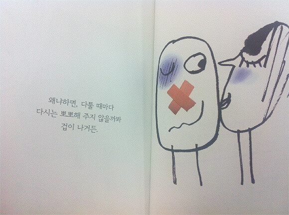 구체적으로 파고들어 설명하지 않고, 선명한 컬러로 보여주지도 않는다. 그렇다고 불행을 확대생산하지도 않고 있는 그대로의 생활을 보여주려고 노력하는 이야기와 그림이 더 아팠다. 첫번째 읽을 때보다 두번째 읽을때 더 아프고, 세번째 읽으면 더 아프지만 감동적이다.