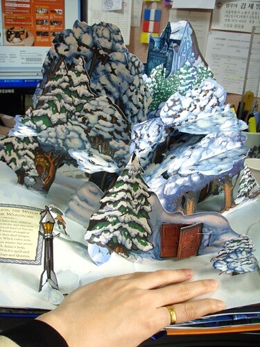 아마도 나의 두번째 팝업이었던 것으로 기억합니다. 책을 펴니 일어나는 회오리에 너무 감동을 받아 안 살 수가 없었죠. 사진으로 찍어 놓으니 허접하기 이를데 없네요. 회오리가 돌아가는 것도 눈에 잘 안보이고, 책을 펼치면 회오리가 회전하면서 일어납니다.