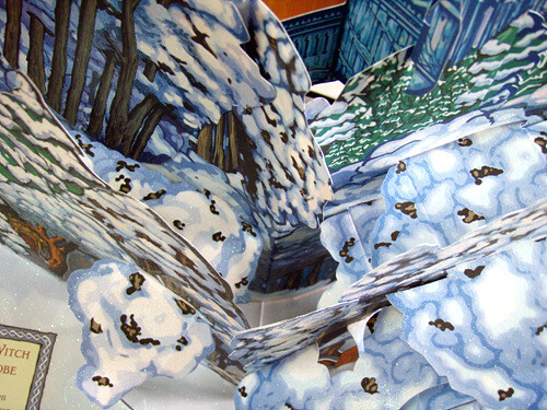 아이들이 처음으로 만나게 되는 나니아의 가로등이 표현된 페이지에서는 가로등이, 나무들이 벌떡벌떡 일어나고, 마녀가 등장하는 작은 페이지를 열면 아이들의 옷장도 열린다.