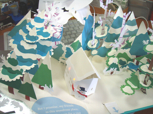 겨울 느낌이 강한 이 책의 팝업들은 화려한 색감이 없이 흰색 만으로도 충분히 아름다운 자연과 동물을 표현해 준다. 여우 두마리가 어찌나 사랑스러운지. 고드름이 달린 동굴이 따뜻하게 느껴질 지경이다.