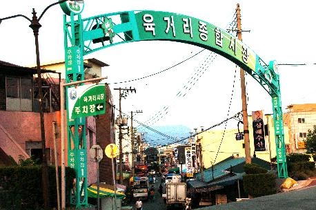 "육거리 시장은 청주 최대의 전통 재래시장입니다. 청주 유일의 하천인 무심천변에 우시장이 형성되면서 자연스럽게 먹거리와 생필품을 교역하는 장소가 되었죠. 하지만 다른 재래시장과 마찬가지로 90년대부터 가속화된 대규모 마트와 쇼핑몰, 홈쇼핑, 인터넷쇼핑 등으로 최고의 상가라는 지위를 양보하고 쇠퇴를 거듭하고 있습니다."