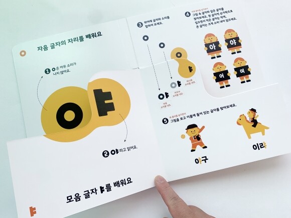 자음과 모음을 직접 조합하여 글자를 만들어볼 수 있는 최초의 놀이형 학습서라고 해요.
