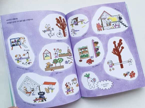 1.4.5권은 책을 넘기면 자음과 모음이 만나 다른 글자가 되게 구성되어 있고