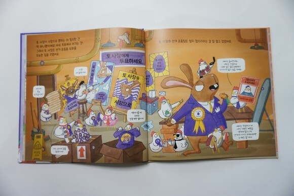 닭들이 사는 마을에 시장을 뽑는 이야기예요.