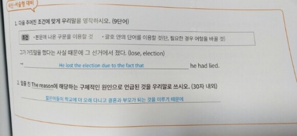 이 부분에서도 편집에 세밀함을 발휘한 것이 돋보이는데 그것은 바로 서술형 대비 문제이다. 수능문제는 객곽식만 나오기 때문에 유형별문제는 오지선다에서 찾기만 하면 되지만 내신에서는 서술형 문제들이 걸림돌이 된다. 이런 부분까지도 캐치하여서 각 문제마다 내신 서술형 대비문제를 만들어 둔 것이다. 단어나 어법등을 활용하여 두문제씩 편집해두고 있는데 편집의 세심함이 감사하다.