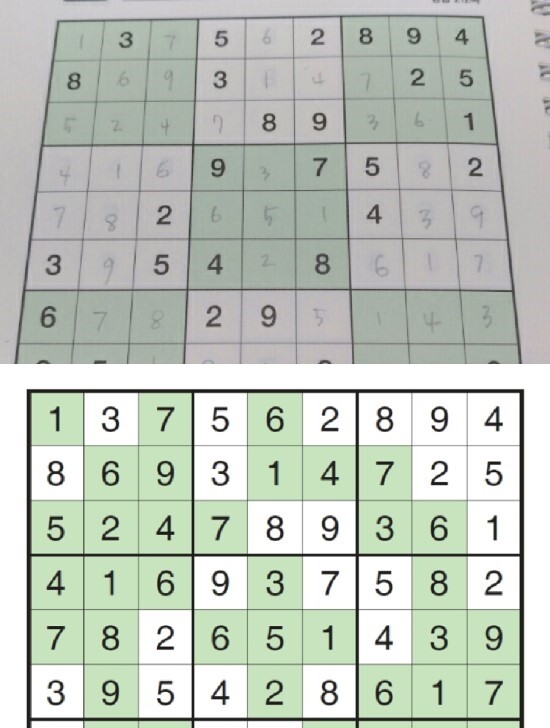 책의 제일 앞부분에 적힌 설명대로 모든 경우의 수를 다 써보기에 이르렀다. 그러다 보니 실마리가 하나 생겼다. 빈칸에 들어갈 숫자 하나를 파악했다. 그렇다고 모든 것이 연달아 잘 풀려나가지는 않았다. 이것은 초급이 아니었으니 말이다. 하나 넘어가면 다시 큰 산이 존재한다. 하지만 그런 산을 넘는 것에서 즐거움을 느끼게 되는 것이 아니었던가. 결국 끝내 모든 것을 답을 보지 않고 완성했다. 비록 문제지는 엉망이 되어 버렸지만 말이다.