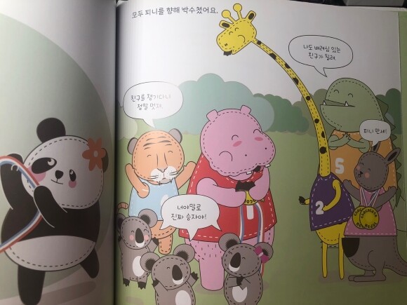 <피니의 초콜릿 메달>은 귀여운 하마인 피니와 다른 동물 친구이 운동회를 하는 장면이 나와요.