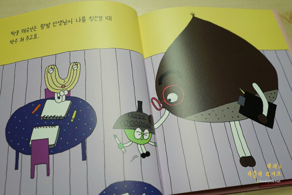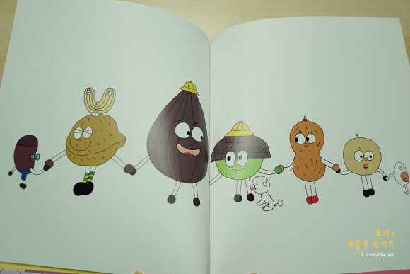 올망졸망 도토리가 엄마에게 유치원 친구들에 대한 이야기를 조근조근 들려주는 귀여운 그림책 , 도토리의 친구들로 아몬드, 캐슈넛, 왕밤, 쌀, 호두, 마카다미아, 땅콩이, 강낭콩이 등장한다! 한창 친구가 소중한 초등학생도 즐겁게 읽을 수 있었던 예쁜 책. 책 속 모든 글도 작가의 필체로 한 글자 한 글자 적었다고 한다.