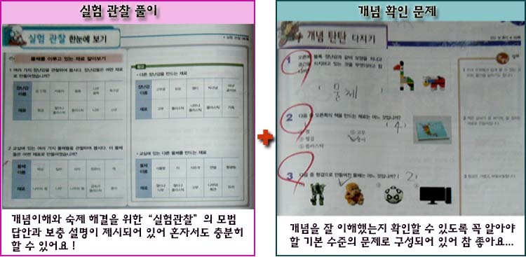 특히 실험 관찰 풀이와 개념 확인문제는 꼭 알아야 할 기본 수준의 문제까지 확인하는 문제를 통해서